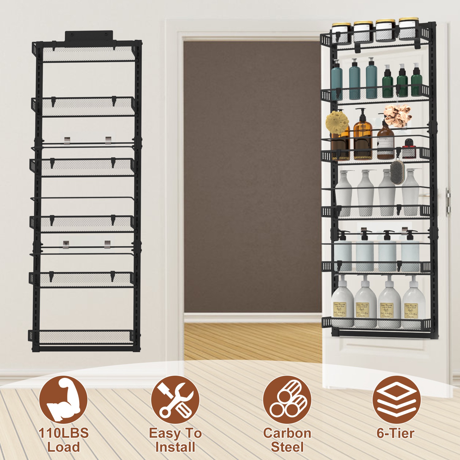 Home > Over The Door Pantry Organizer 6-Tier Pantry Door Organizer Carbon Steel 110LBS Loading Easy Install Behind Door Storage For Closet Kitchen Bathroom 5